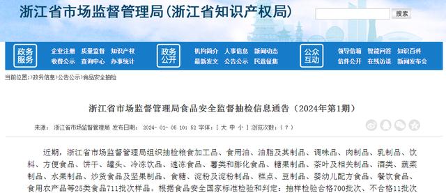 浙江省市場監(jiān)督管理局食品安全監(jiān)督抽檢信息通告(2024年第1期)近期,浙江省市場監(jiān)督管理局...[正文]
