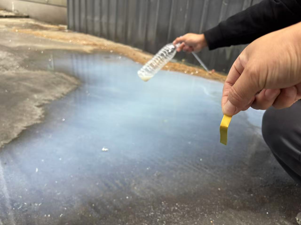 2025-11-11在紹興上虞區(qū)小越街道金瀾路智達工業(yè)園區(qū)3號樓北側(cè),有這樣一大灘白色的污水,十分顯眼。就在上虞佳禾機械有限公司的...